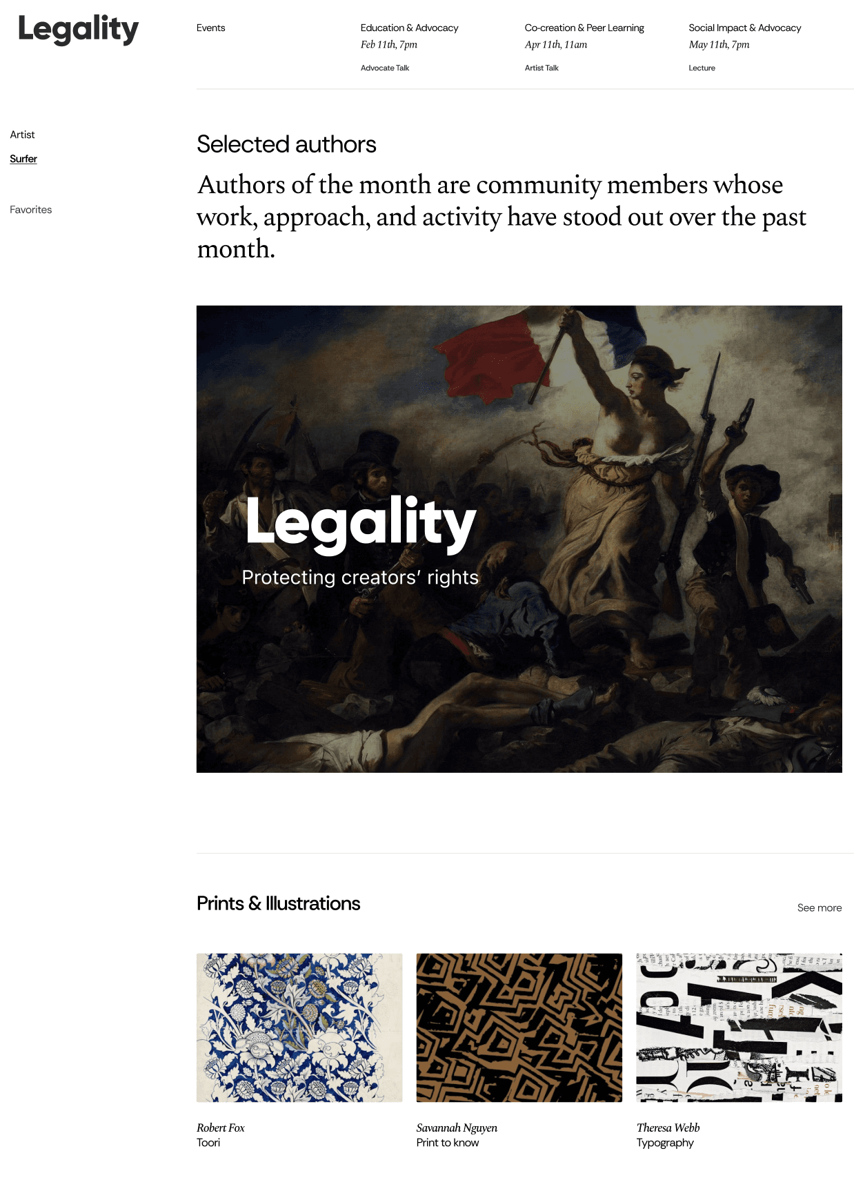 Legality is a global platform uniting authors, lawyers, and brands in one protected ecosystem. It gives creators a private portfolio space to store, show, and license their works — and provides brands with verified, legally safe access to real authors.